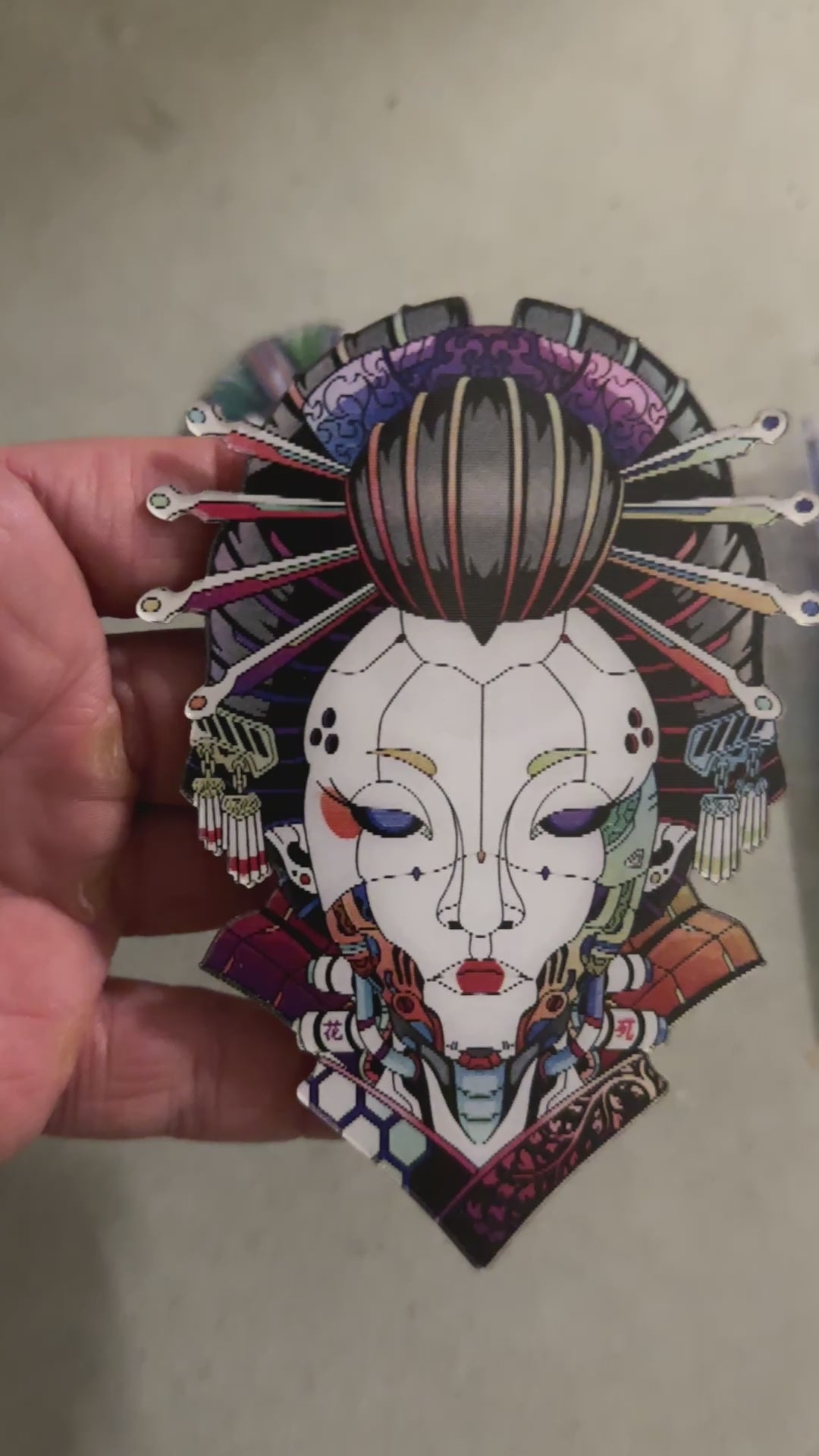 Lenticular printing is a technology in which lenticular lenses (a technology also used for 3D displays) are used to produce printed images with an illusion of depth, or the ability to change or move as they are viewed from different angles. The CyberPunks were designed by Tov Hidayat. The self adhesive Acrylic Artpiece is 4 Inch height with adhesive backside.