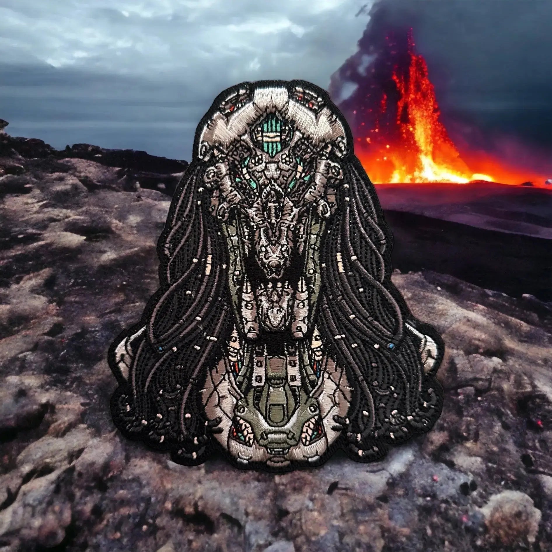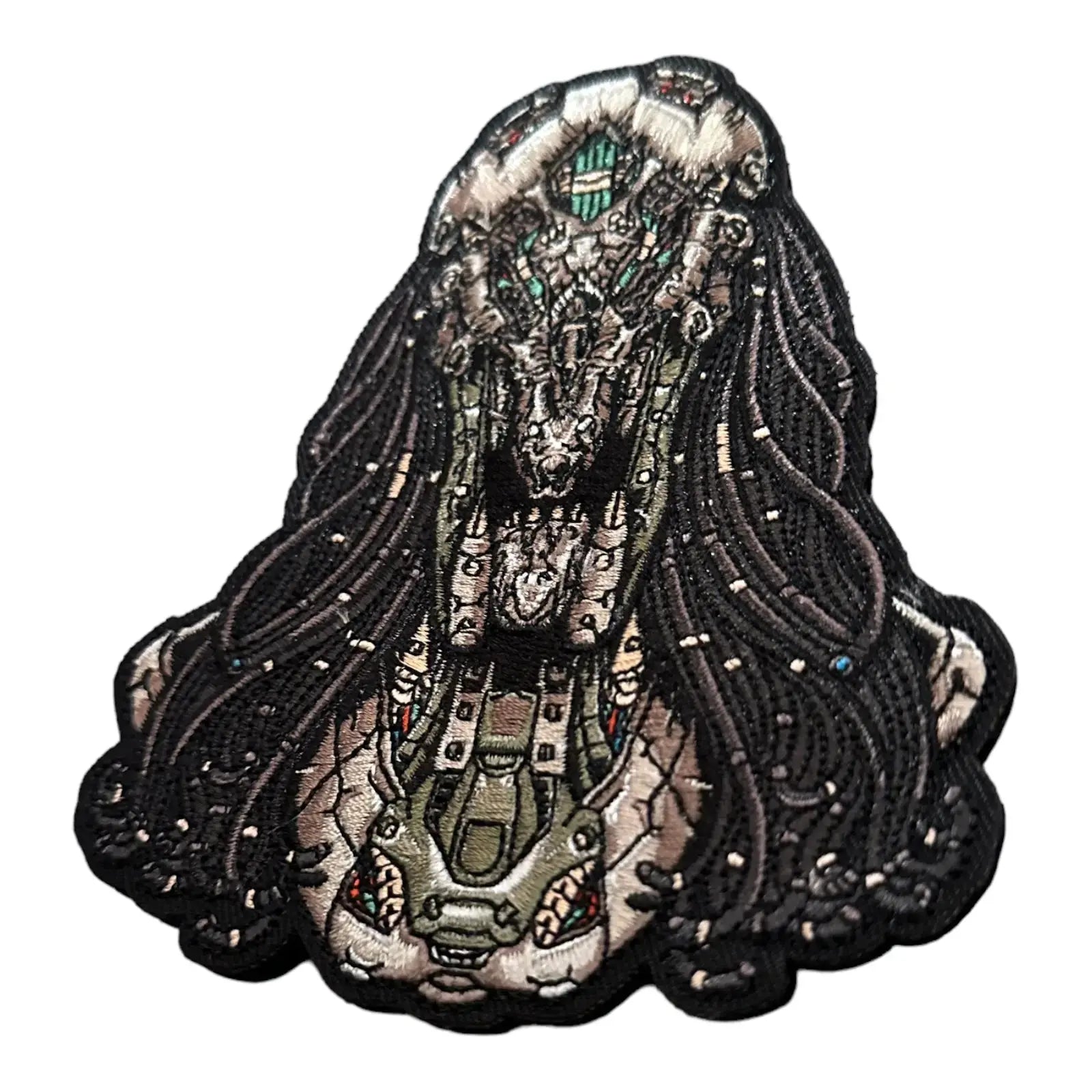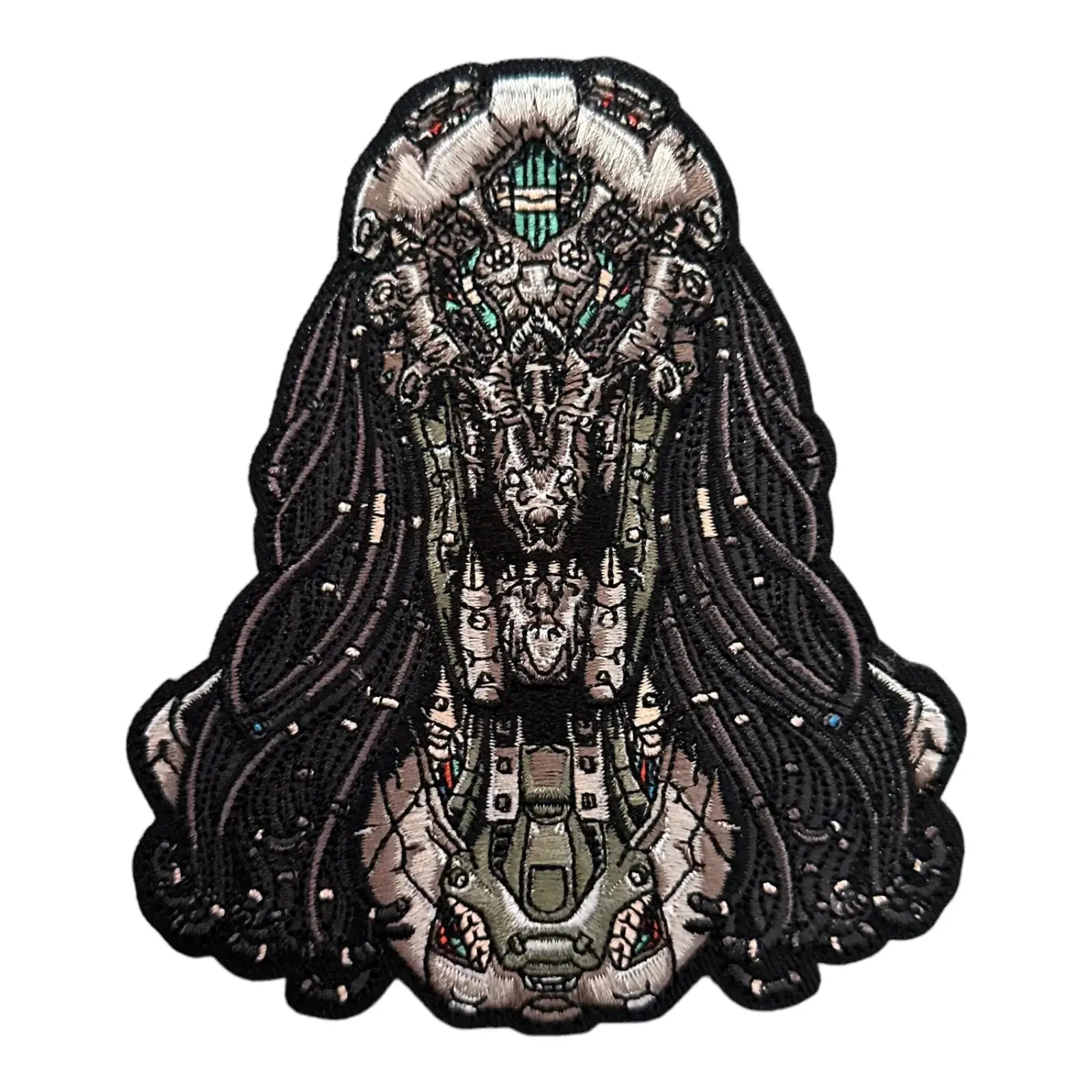 The patch features a sleek and menacing cybernetic predator, its metallic limbs and glowing cybernetic eyes exuding an air of power and dominance. The intricate details, from the sharp fangs to the intricate circuitry, are meticulously embroidered with high-quality threads, ensuring a visually stunning and durable design.