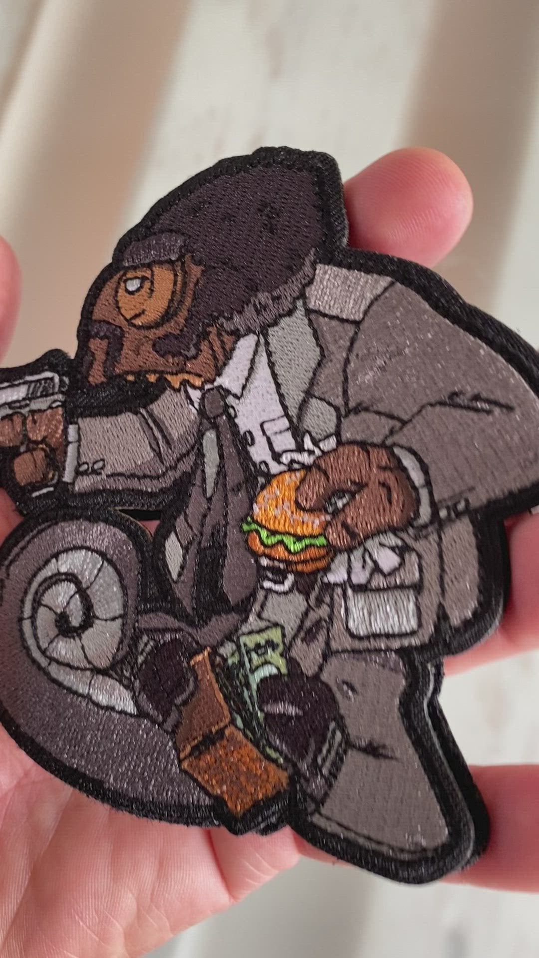 Size for the Rubber is 3.5 inch and the Embroidery are 4 inch and only 100 Rubber and 200 Embroidery are made - comes with numbered Artcard